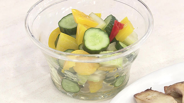 夏野菜の塩水漬けは、1~2日後が食べごろですが、冷蔵で約5日間保存可能です