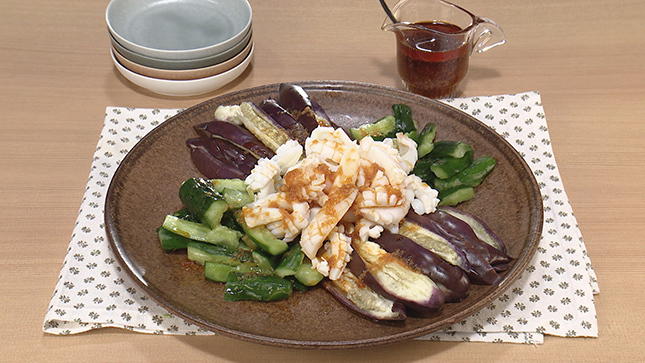 いかは格子状に切れ目を入れてゆでると、見た目も華やかになり、たれがからんで食べやすくなります