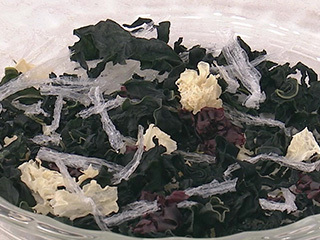 わかめ、昆布、赤つのまたなど、数種類の海藻を混ぜたもの。水でもどして使う。サラダや酢のもの、刺身のツマなどに用いる。