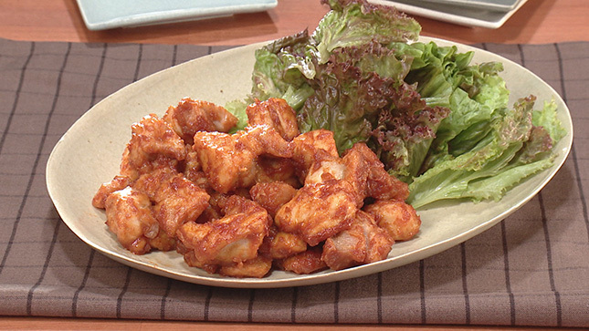 鶏肉に揚げ色はつけなくてOK。やわらかく揚げて、たれをからめてください