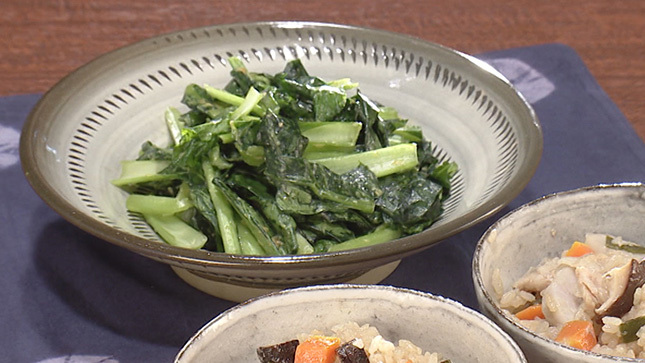 小松菜は生でいただくのでよく洗い、みそが全体に行きわたるようにポリ袋の上からもみましょう。