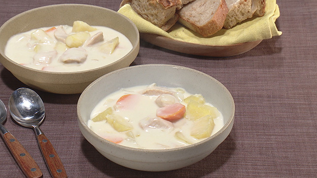 寒い時期においしいクリームシチュー。具材に変化をつけて楽しんでください!