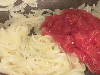 ウスターソースとはちみつを加えることで、トマトソースにうまみとコクをプラスします