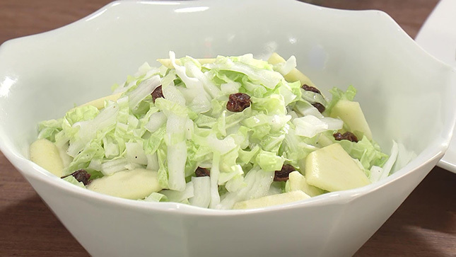 サラダのドレッシングは、しんなり食感がお好みなら事前に、シャッキリ食感がお好みなら直前に混ぜてください