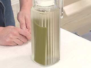 材料・作り方(約5カップ分) だし昆布10㎝(10g)はぬらして固く絞ったふきんで汚れをふく。保存容器に入れ、水5カップを加えて一晩(8時間)冷蔵庫におく。 *急ぐ場合は煮出してもよい。だし昆布10㎝(10g)は同様に下処理をして鍋に入れ、水5+1/2カップを加えて30分ほどおく。弱火で15分ほどゆっくりと煮て、フツフツとしてきたら火を止めて昆布をとり出す。