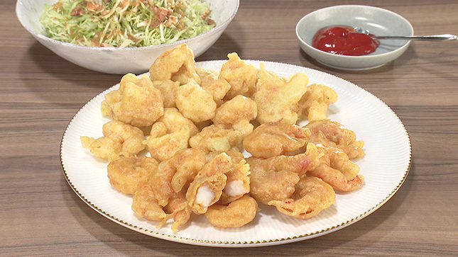 ベーキングパウダーを加えることで、サクッとした衣になります