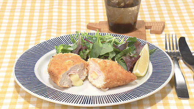 ハムの繊維が縦になるようにチーズを置いて巻くと、できあがった時に食べやすいです