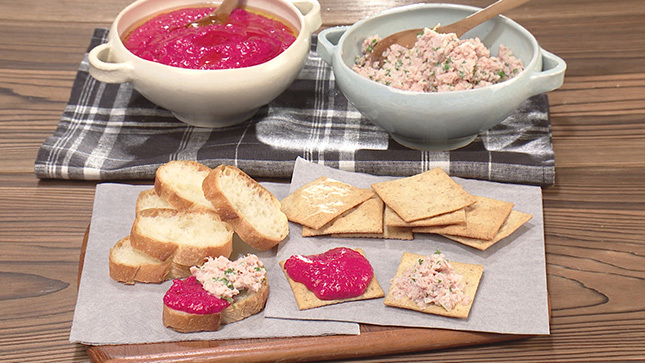 クラッカーやパンにのせてお召し上がりください。2種類のディップを一緒に食べるのもおいしいですよ!