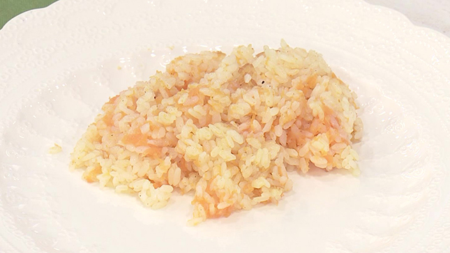 にんじんの炊き込みピラフは、すりおろしたにんじんと絞り汁を分けることで水分を調整しましょう