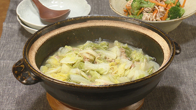 白菜がくったりして、充分にやわらかくなるまで蒸し煮にするのがポイント