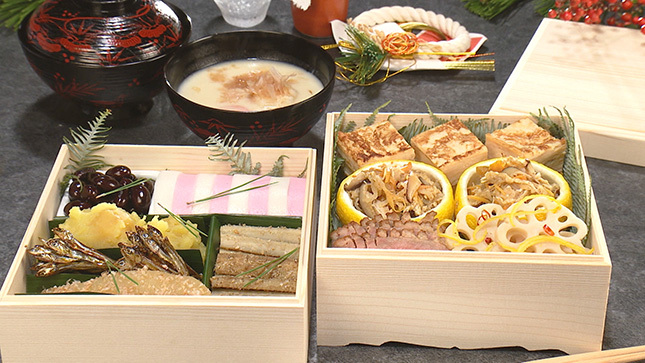 西京みそは麹が多く、長めに煮るのが他のみそとの違いです。丸もちを使って京都の雑煮を味わってください!