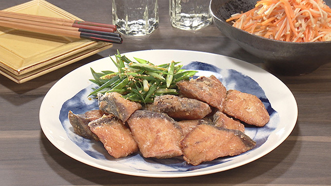 (おろししょうが1かけ分 しょうゆ、酒各大さじ1 塩小さじ1/3 片栗粉適量)