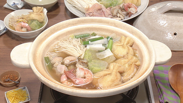 汁をおいしくいただきたいので、魚介や鶏肉などの生ものは、下ゆでしてから鍋に入れましょう