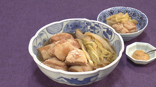 角煮の煮汁で白菜を煮ると、白菜から水分が出ることでやさしい味になります