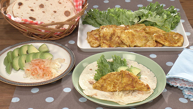 鶏肉のカレーマヨソテー トルティーヤ添え