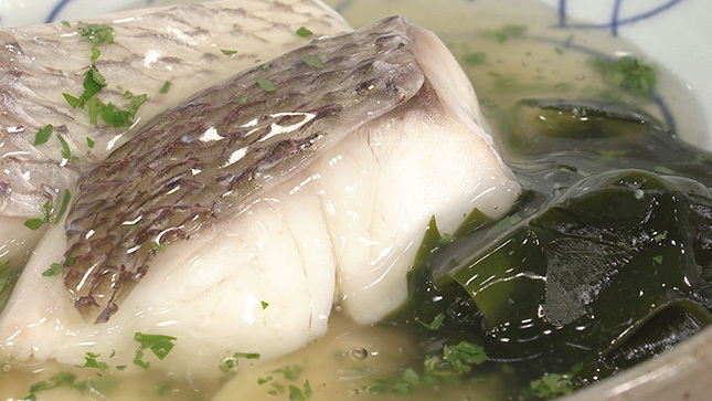 鯛をふっくらと蒸し上げるので、たけのこもやわらかい穂先の部分を使いましょう