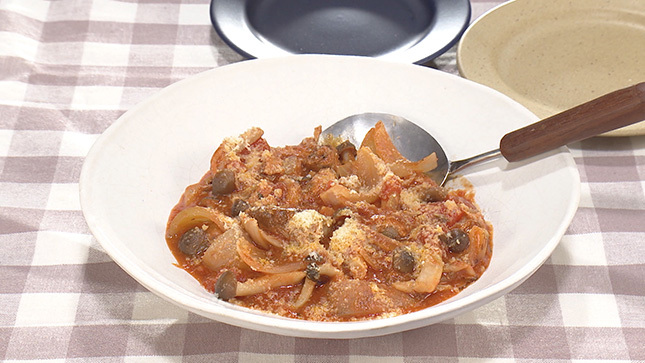 材料・作り方(1人分) さば缶ときのこのトマト煮の半量を使用。 1:鍋に湯1ℓを沸かし、塩小さじ2を加え、スパゲティ80gを表示時間通りにゆではじめる。ゆで汁1/4カップはとりおく。 2:フライパンにさば缶ときのこのトマト煮、トマトの水煮1/2缶、(1)のゆで汁を入れて中火にかける。煮立ったら、味をみて塩少々でととのえ、少し煮つめる。ゆで上がったスパゲティの湯をきって加え、手早くからめて器に盛る。