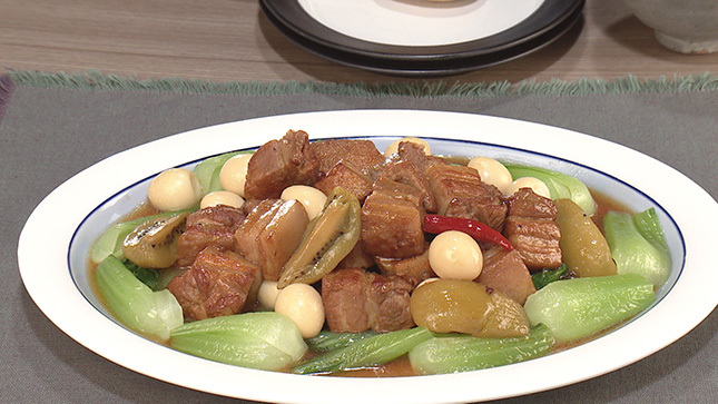 キーウィと一緒に煮ると、酵素で豚肉がやわらかくなり、酸味が効いてさっぱりと煮上がります