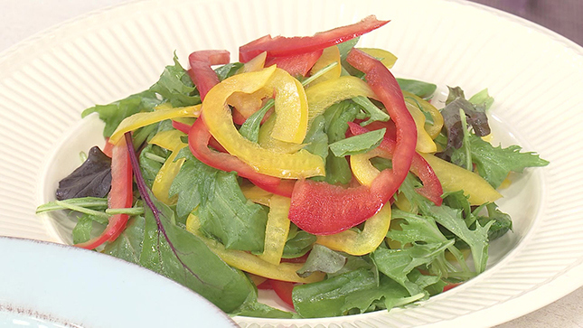 甘みのあるパプリカは、生でも食べやすい野菜です。薄切りにして、サラダに加えて召し上がれ!