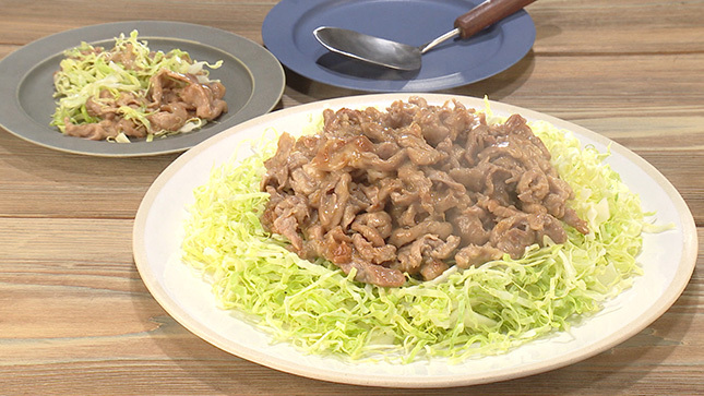 やわらかくて甘みのある春キャベツのせん切りの上に肉を盛り、一緒に召し上がれ!