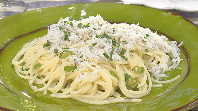 仕上げにしらす干しをたっぷりのせて、イタリアンパセリとレモンの皮で香りをプラスしましょう