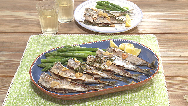 にんにくの香りを移した油でいわしを焼くことで、いわしの臭みが消えてぐっとおいしくなります