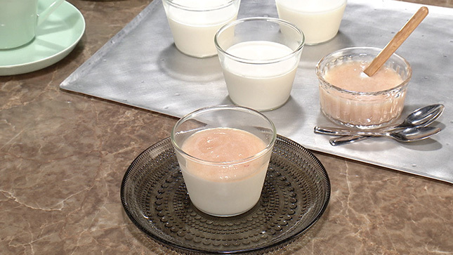 ブラマンジェは牛乳にアーモンドの香りを移して作るのが特徴。アーモンドダイスを使うと手軽です!