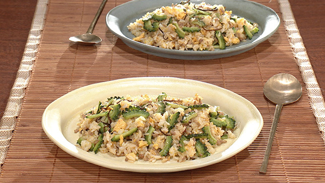 ゴーヤの苦みを残してアクセントにしたいので、水にさらしたりはせずに使います