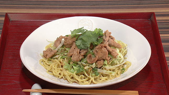 五香粉を効かせた豚肉を煮汁ごとかけて、シャキシャキのレタス、香菜と混ぜて召し上がれ!