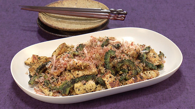 ゴーヤは塩をもみ込み、10分ほどおいてからさっと洗うと、苦みがやわらぎます