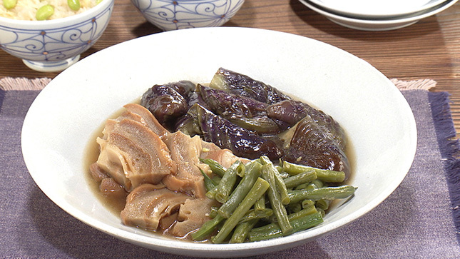 車麩、なす、いんげんの煮もの
