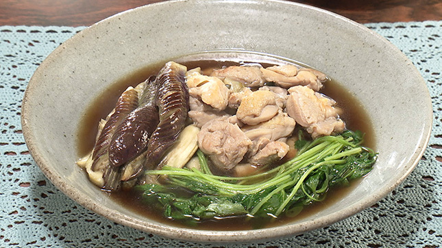 なすと鶏肉をごま油で焼いてから煮ることで、コクが出ます