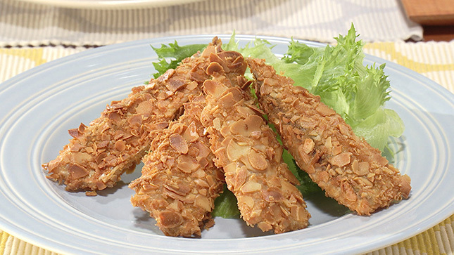 パン粉にスライスアーモンドを混ぜることで、香ばしいフライになります
