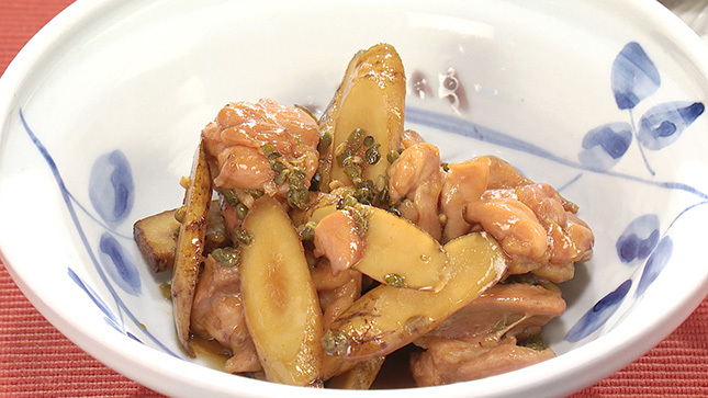 鶏肉とごぼうの山椒梅酒煮