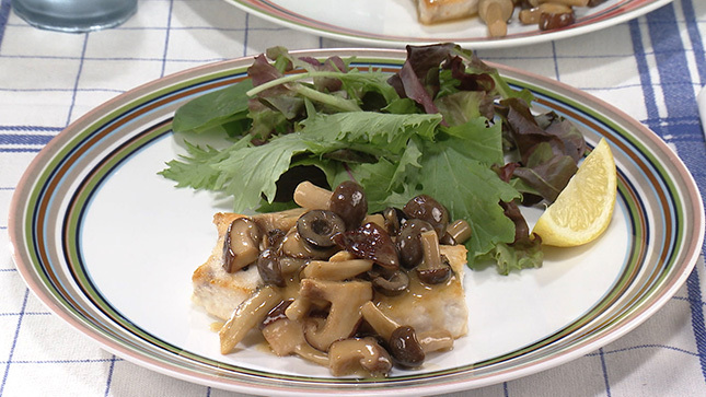 2種類のきのことブラックオリーブを加えたソースで、秋らしい一皿に仕上げましょう