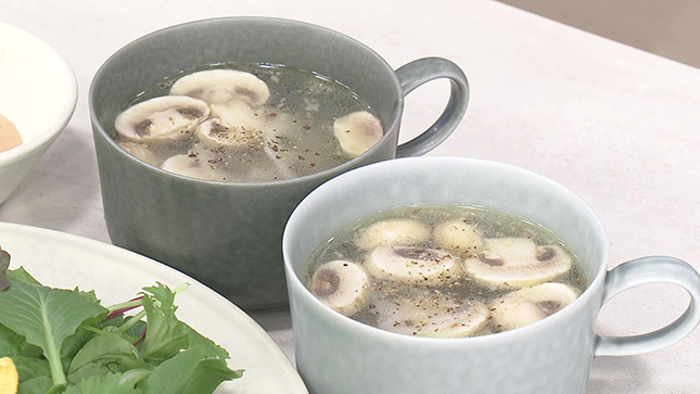 れんこんとマッシュルームのガーリックスープ
