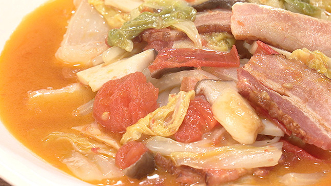 トマトの酸味でさっぱりと仕上がります。甘みが増してきた白菜を、たっぷりと召し上がれ!