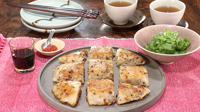 大根もちは蒸してから焼きますが、蒸し器ではなく電子レンジを使うと手軽に作ることができます