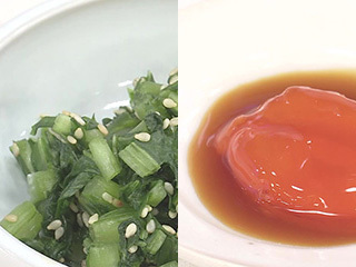 ●かぶの葉の浅漬け 材料・作り方(作りやすい分量) かぶの葉100gは1㎝幅に切り、塩二つまみ(かぶの葉の重量の2%)を加えてもみ、10分おく。水気をしっかりと絞り、炒り白ごま大さじ1を加えてよく混ぜる。好みで、ごま油や塩昆布などを加えてもよい。ごはんにかけたり、チャーハン、塩焼きそば、冷ややっこ、蒸し鶏とあえるなど、幅広く使える。冷蔵で4日、冷凍で2週間保存可能。 ●卵黄のしょうゆ漬け 材料・作り方 卵黄1個分は小さな器に入れてめんつゆ(3倍濃縮)を浸るくらい注ぎ、ラップをして冷蔵庫で1時間~一晩漬ける。ごはんにのせるほか、長く漬けたものはお酒のおつまみになる。
