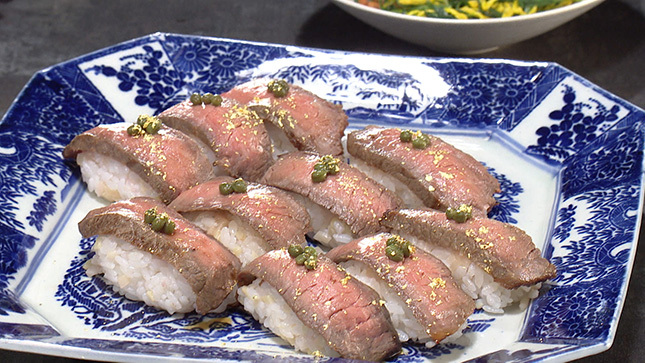 仕上げに食用の金箔を散らすと、さらに華やいだ一皿になります