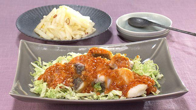 白菜にもチリソースをからめて、一緒に召し上がってください