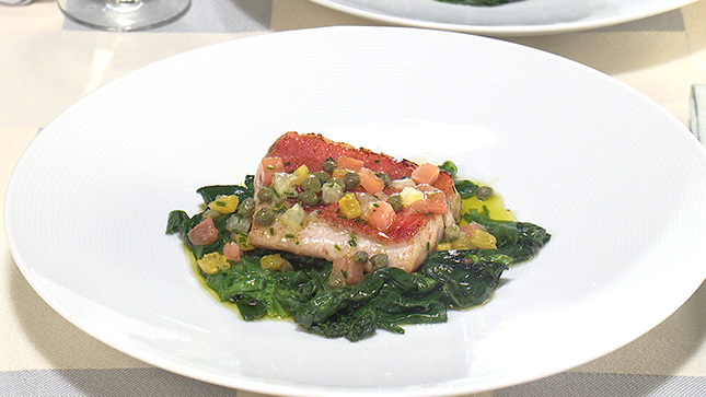 金目鯛は皮目をパリッと焼いたら返し、バターをかけながら火を通しましょう