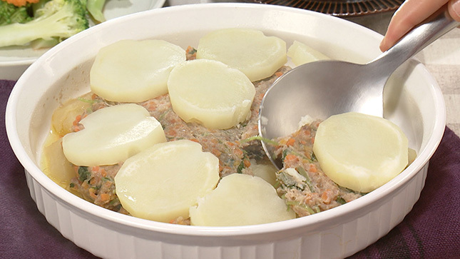 肉だねに最初から野菜を加えると水気が出てしまうので、先に調味料とひき肉をよく練り混ぜましょう