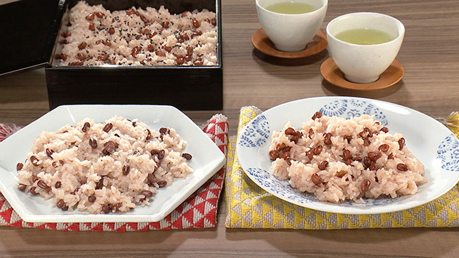 あずき、ささげは、ともに米に赤い色をつける。あずきは煮ると皮が破れやすいため、〝皮が切れる=切腹〟に通じるとして、江戸時代に武士の間であずきの代わりに皮が破れにくいささげが使われるようになり、その習慣が今も残っている。好みでどちらを使ってもよい。