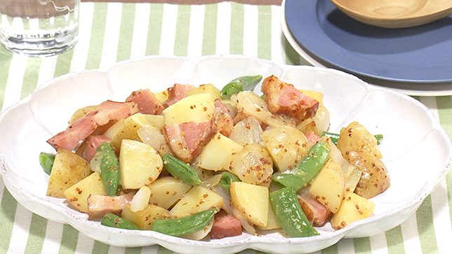 新じゃがとスナップえんどうのマスタード炒め