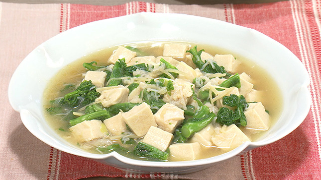 豆腐を低温で凍らせたあと、解凍、脱水し、乾燥させたもので〝凍り豆腐〟とも呼ばれる。豆腐から作るためたんぱく質が豊富。昔ながらの製法で作られたものは、時間が少しかかるがぬるま湯でもどすと、豆の味が残る。もどし時間を短くしたり、もどさずに使えるようにしたりした製品も増えている。