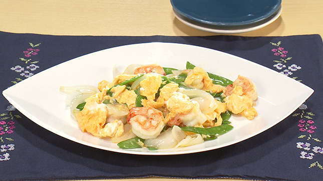 えび、卵、絹さやの塩炒め