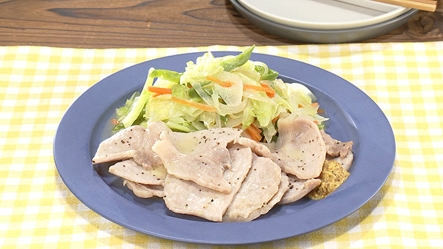 塩豚の下味に砂糖も入れることで、やわらかくしっとりと仕上がります