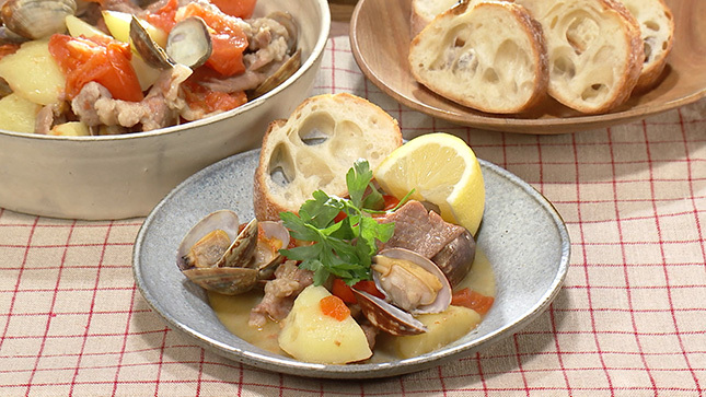 じゃが芋に、あさりと豚肉のうまみを吸わせるのがおいしさの決め手!
