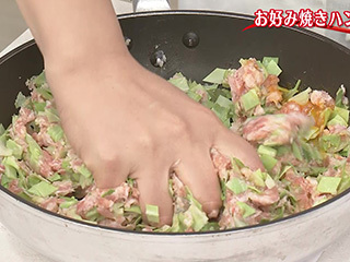 ボウルを使わずに、フライパンの中で肉だねを作ることで、洗いものを減らすことができます
